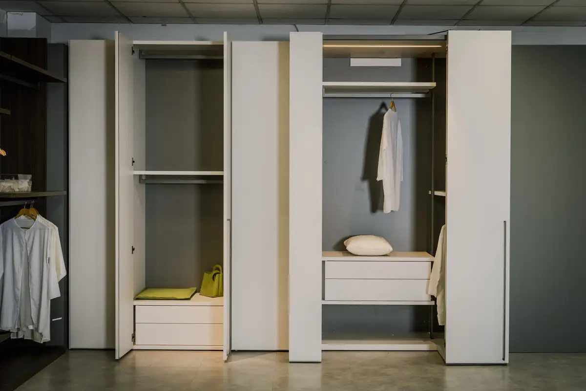- Integrazione armoniosa nell’ambiente: il design compatto della maggior parte degli armadi salvaspazio consente di inserirli facilmente in ogni stanza. I materiali e le finiture possono essere coordinati con il resto dell’arredo, garantendo coerenza estetica anche nei progetti su misura.